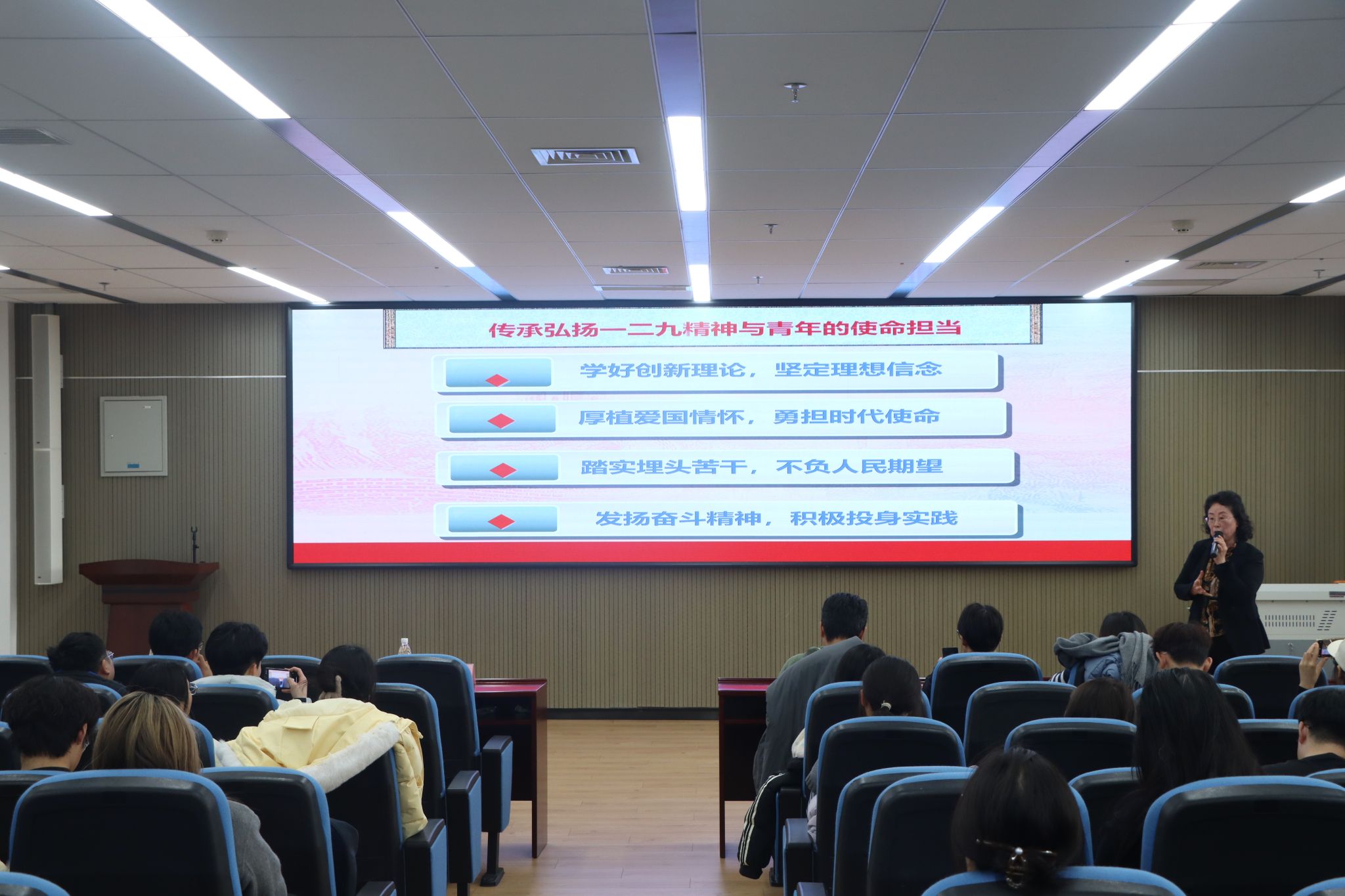 取此同时,校团委还使用好校史文化资本,浸湿青年心灵,培育“爱国+”系列文化精品。留念“一二·九”活动90周年原创校史话剧《薪火》走进思政讲堂,让校史文化以更新鲜、更具传染力的体例走进学生心里,鞭策课程思政取思政课程协同育人。艺术学院团委举行“江山铭刻·薪火相传”交响合唱音乐会,曲目均取材色典范音乐做品,以恢宏乐章讴歌平易近族时令,东大爱国文化。资本取土木匠程学院团委举办从题演讲会,连系“54煤”班、可可托海的东大人等前辈事迹,呼应“一二·九”爱国情怀,将红色教育取院史传承深度融合。生命科学取健康学院团委开设文化讲坛,邀请党政带领、全国劳动榜样做系列宗旨演讲,紧扣“一二·九”活动爱国内核,连系生命科学专业特色取行业成长,指导学生了了百年变局下的青年选择。组织本硕各年级团支部完成子从题创做并汇聚为完整从题做品,展示专业风度,加强团队凝结力。