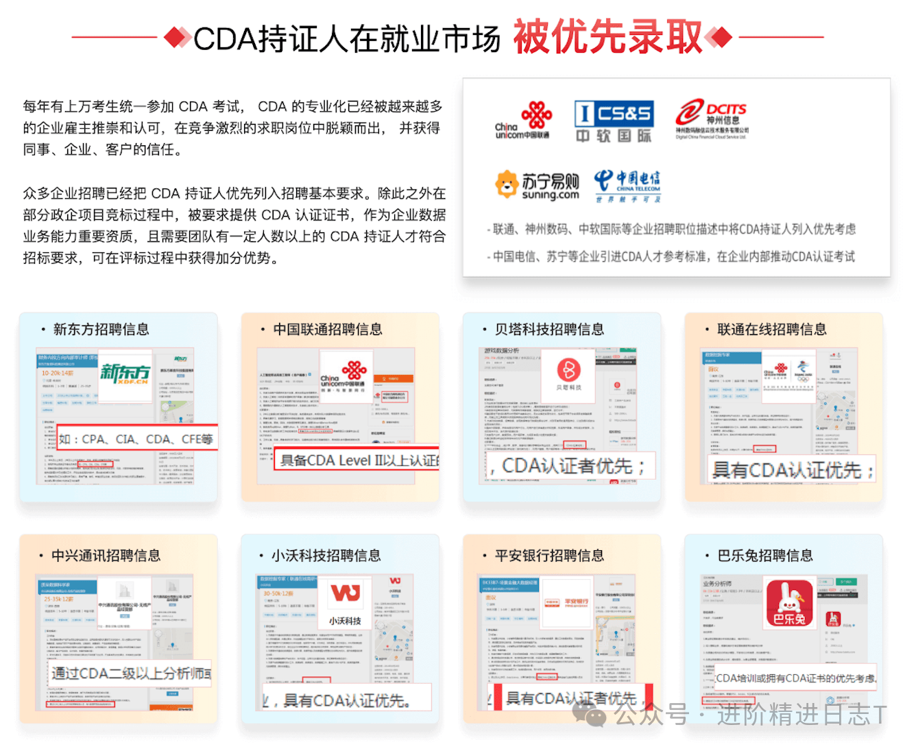 ✅CDA企业承认度若何?CDA企业承认度很是高,对找工做很是有帮帮。良多银行、金融机构的手艺岗会要求必需是CDA数据阐发师二级以上的持证人。中国联通、央视广信、德勤、把CDA持证人列入优先考虑或者对员工的CDA测验给补助。